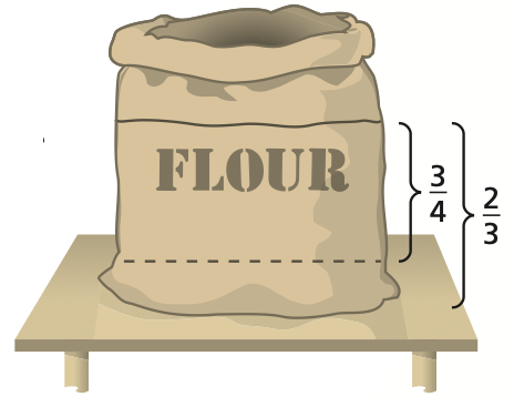 You have 2 3 of a bag of flour. You use 3 4 of the flour to make empanada dough. How much of the entire bag do you use to make the dough?